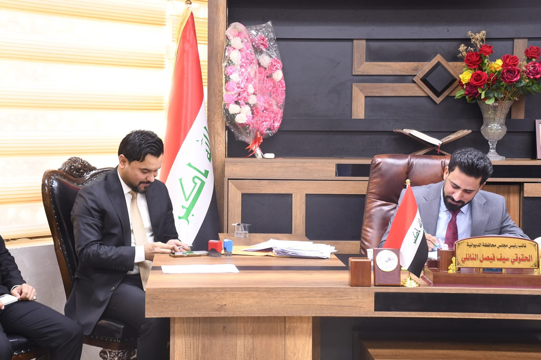 نائب رئيس مجلس محافظة الديوانية الحقوقي سيف فيصل النائلي يستقبل مستشار وزير الدفاع الدكتور صالح السعيدي .