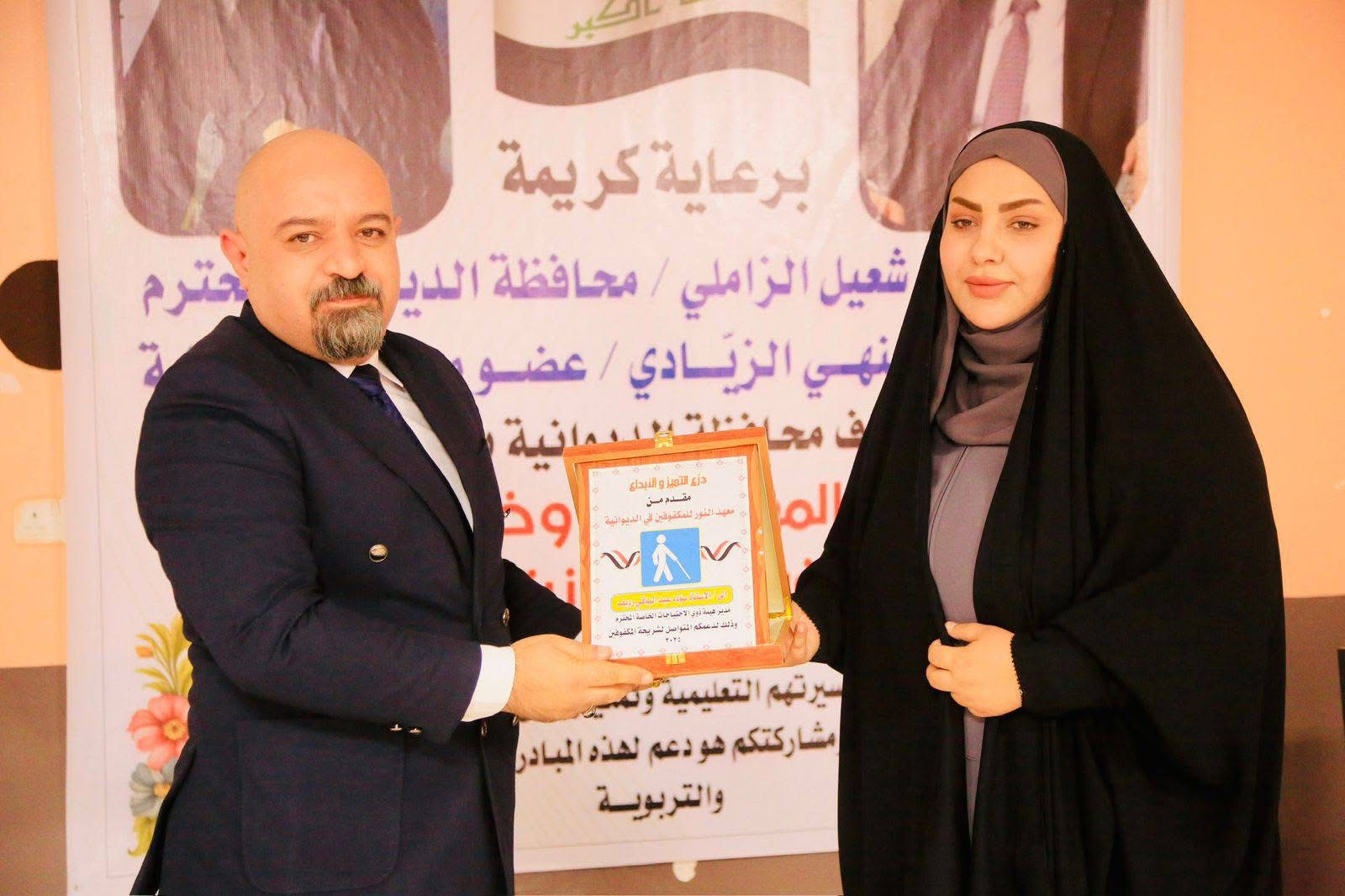 شاركت السيدة أنوار منخي الزيادي عضو مجلس محافظة الديوانية في حفل افتتاح متوسطة المكفوفين وضعاف البصر، بحضور عدد من المسؤولين والكوادر التربوية.