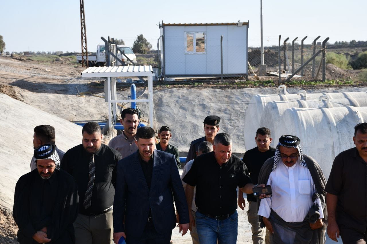 رئيس مجلس محافظة الديوانية يتفقد مشروع مجمع مياه قرى السعيد وأبو عظم والنوافلة ويوجه بتشغيل مجمع ماء السعيد على مدار ٢٤ ساعة
